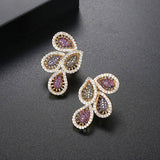 Trendy Crystal leaves with multi stones stud earrings.
